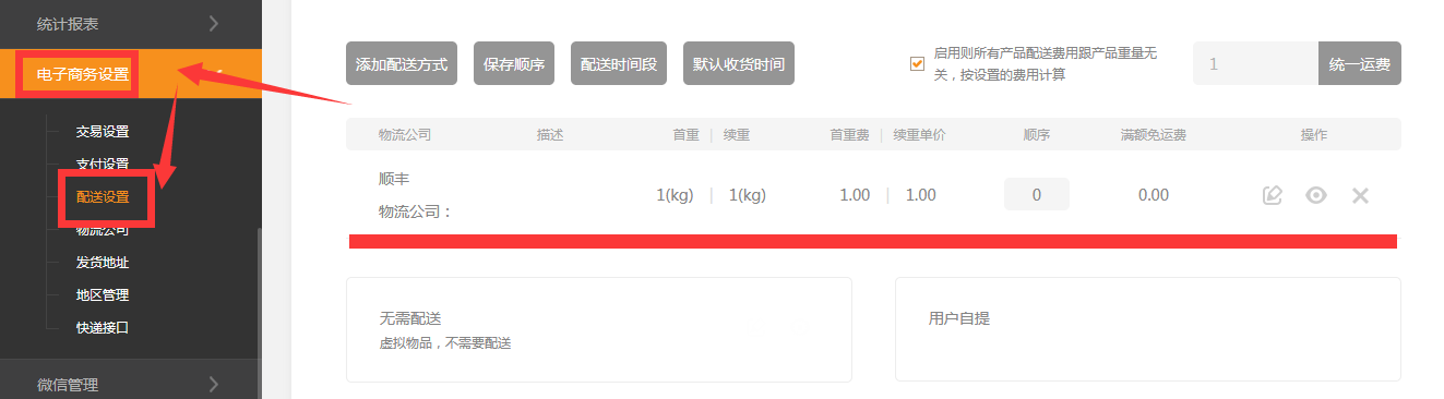 添加全国统一价的配送方式